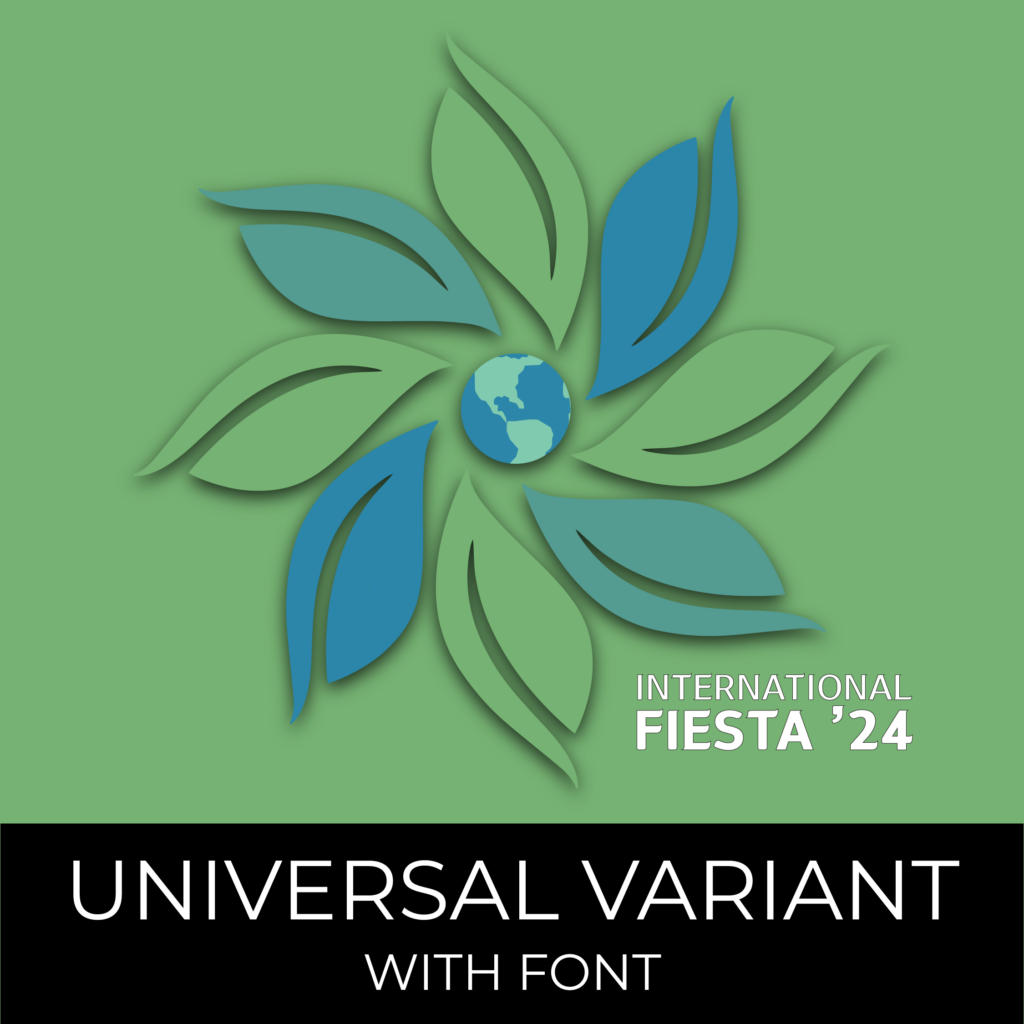 The mark features a simple leaf form wrapping around the globe, symbolizing growth, unity, and the interconnectedness of cultures. Its circular movement reinforces the idea of the world coming together as one. A balanced color palette of light blue, green, and deep blue—placed opposite each other—represents both contrast and cohesion, reflecting cultural diversity within a shared space.