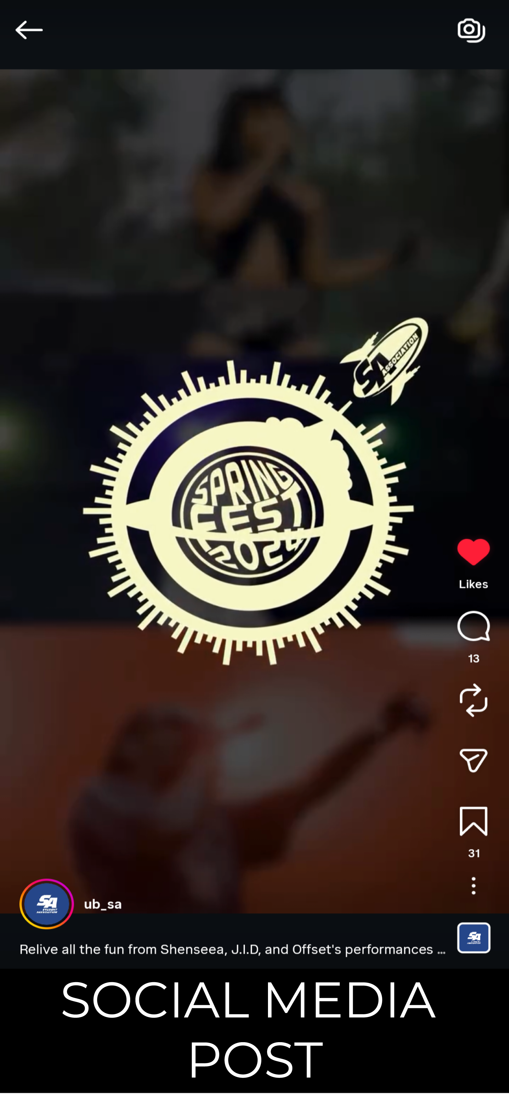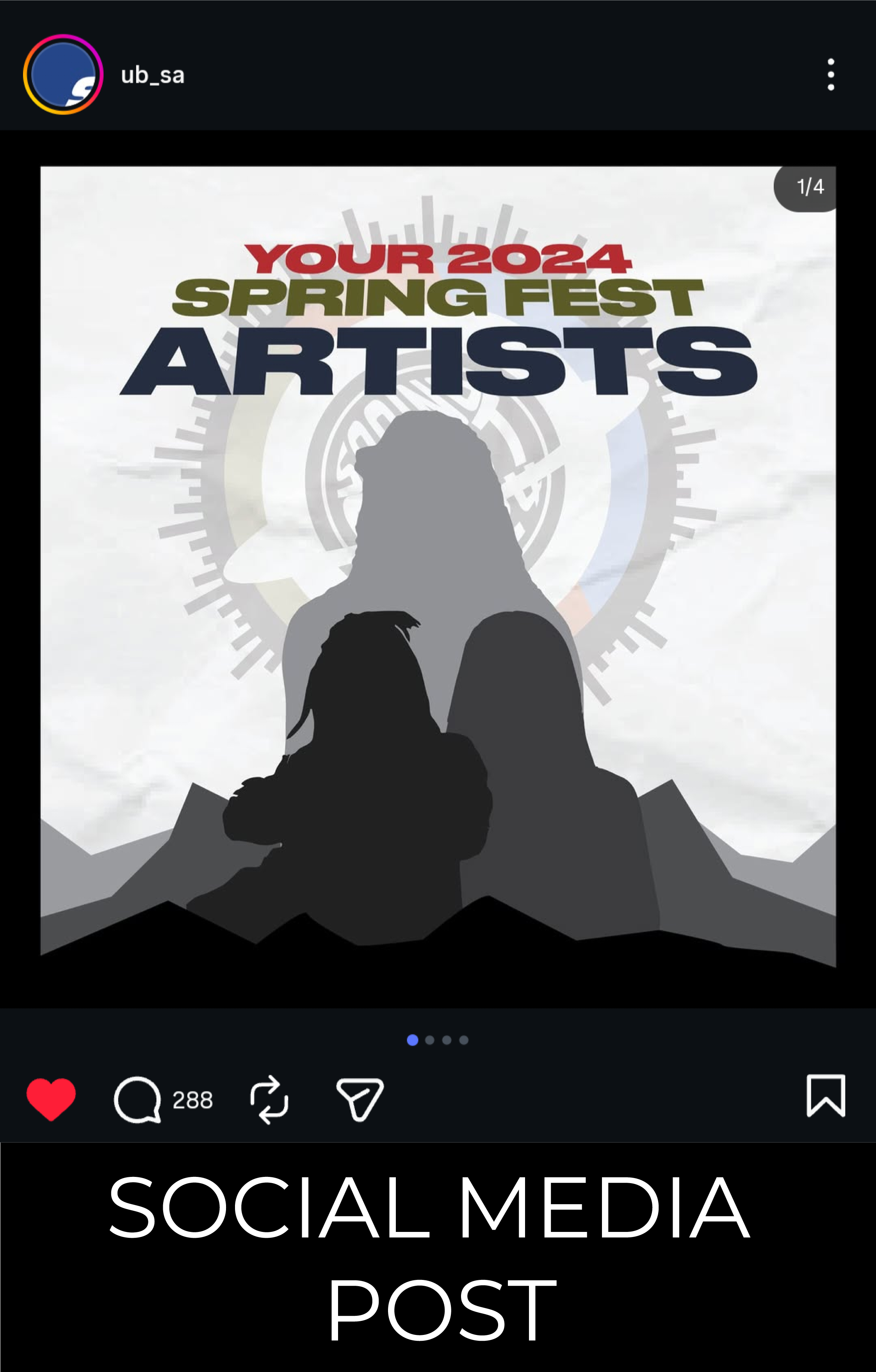 This design was created for Spring Fest 2024, hosted by the University at Buffalo Student Association. The event theme was space, inspired by its May 4th date, referencing the cultural association with Star Wars. The visual identity blends outer-space imagery with music symbolism to reflect Spring Fest as both a themed and performance-driven event.